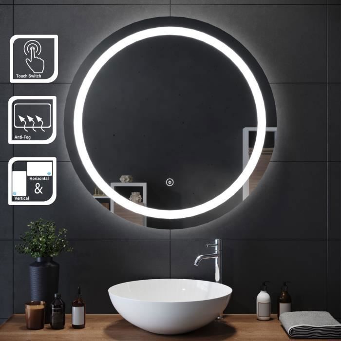 Jeobest Anti Brouillard Miroir Rond Lumineux Led Salle De Bain 24w O 80cm Achat Vente Miroir Salle De Bain Cdiscount
