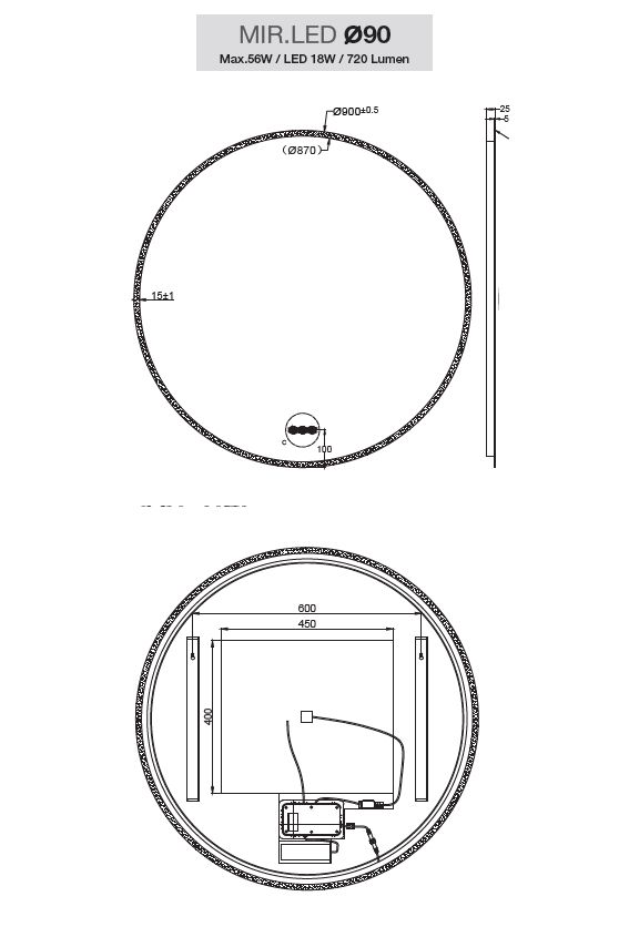 Miroir Rond Lumineux Salle De Bain 90 Cm