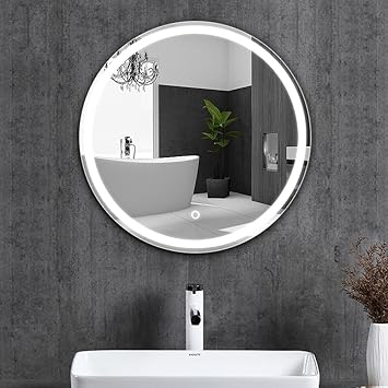 Sirhona Miroir Rond Salle De Bain Tactile 70x70cm Lumineuse Led Lumineuse Miroir Miroir De Maquillage Avec Capteur De Controle Tactile Antipoussiere Et Anti Buee Lumiere Blanche Amazon Fr Cuisine Maison