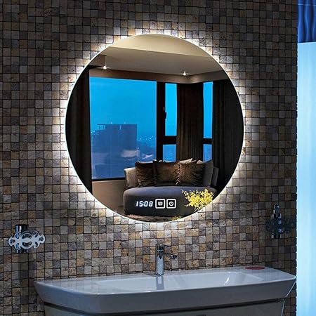 Miroir De Salle De Bains Rond A Led Lumineux Avec Interrupteur Capteur De Lumiere Tactile Heure Temperature Anti Buee Amazon Fr Cuisine Maison