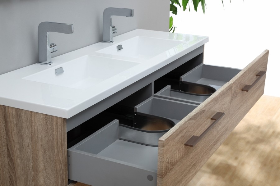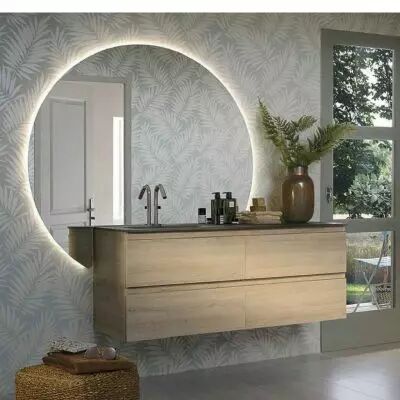 Meuble 140 Cm 1 Vasque A Gauche Cotes Laque Et Facade Bois Miroir My Lodge Sanijura