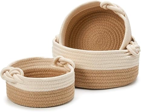 Ezoware Panier De Rangement Rond En Corde De Coton Tresse Rangement Maquillage Corbeille De Rangement Boite De Rangement Pour Salle De Bain Meuble Chambre D Enfant Lot De 3 Marron Beige Amazon Fr Bebes