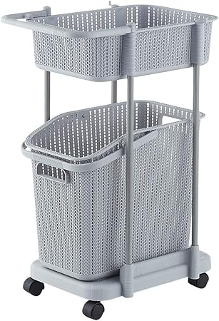 Panier De Rangement Pour Salle De Bain Sur Roulettes Panier En Plastique A 2 Couches Pour Panier A Linge Etagere Creuse Rectangulaire Avec Capacite Et Crochet Chariot De Tri Pratique Verde Amazon Fr