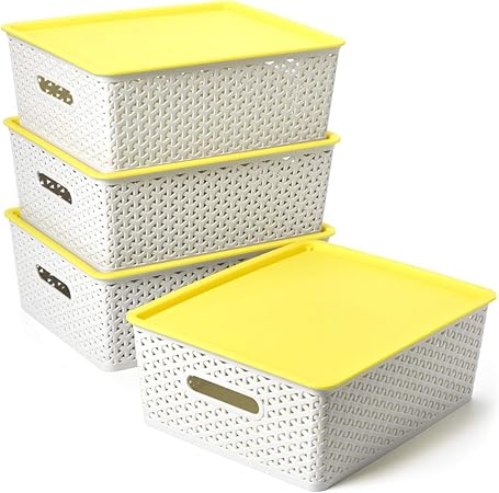 Ezoware Grand Panier De Rangement En Plastique Tisse Avec Couvercle Boite De Rangement Bac De Rangement Pour Cuisine Salle De Bain Chambre D Enfant Lot De 4 Gris Et Jaune Amazon Fr Cuisine