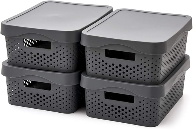 Ezoware Panier De Rangement Empilable En Plastique Avec Couvercle Organiseur De Placard Boite De Rangement Pour Cuisine Salle De Bain Bureau Chambre D Enfant Lot De 4 Gris Fonce Amazon Fr Cuisine Maison