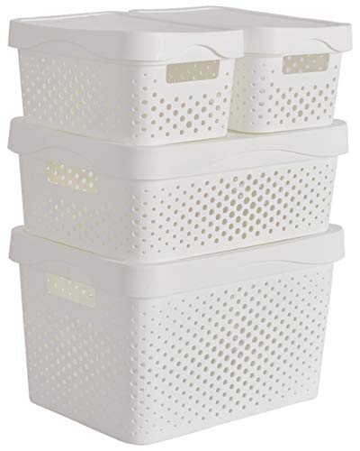 Salle De Bain 25 X 17 X 12 Cm Ezoware Gris Petit Panier De Rangement Empilable Avec Couvercles En Plastique Pour Cuisine Paquet De 4 Isita Com Mx
