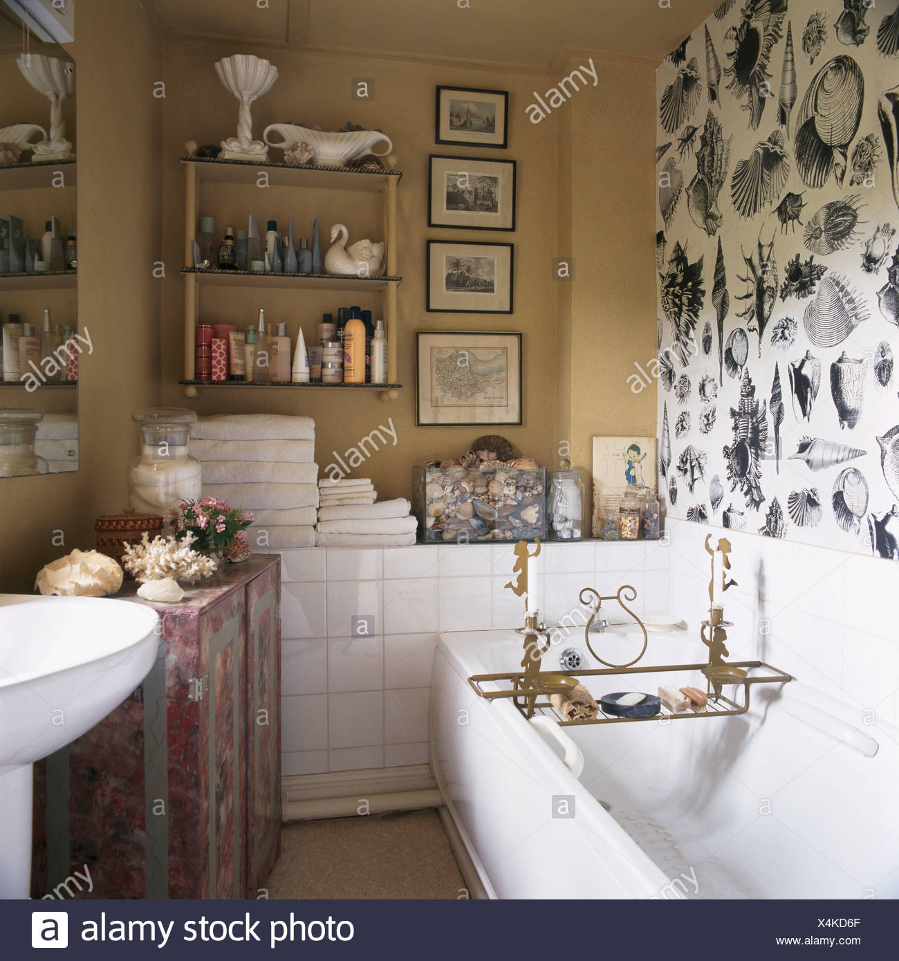Fond D Ecran Coquillage Blanc Noir Baignoire Ci Dessus Dans La Petite Salle De Bains Avec Beige Collection De Photos Et De Petites Tablettes Sur Mur Photo Stock Alamy