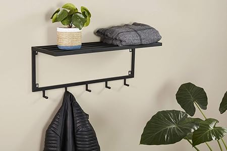 Lifa Living Porte Manteau Mural Design Metal Noir Patere Mural Avec Etagere De Rangement 5 Crochets Entree Salle De Bain Chambre Cuisine 75 X 26 X 30 Cm Amazon Fr Cuisine Maison