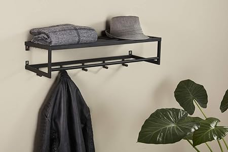 Lifa Living Porte Manteau Mural Metal Noir Patere Mural Avec Etagere Pour Entree Chambre Salle De Bain Etagere Porte Manteaux Mural Avec Rangement 4 Crochets Amazon Fr Cuisine Maison