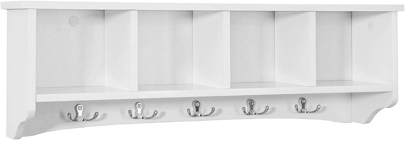 Sobuy Frg48 L W Portemanteau Etagere Murale Porte Manteau Salle De Bain Meuble D Entree Avec 4 Compartiments De Rangement Et 5 Crochets Blanc Amazon Fr Cuisine Maison