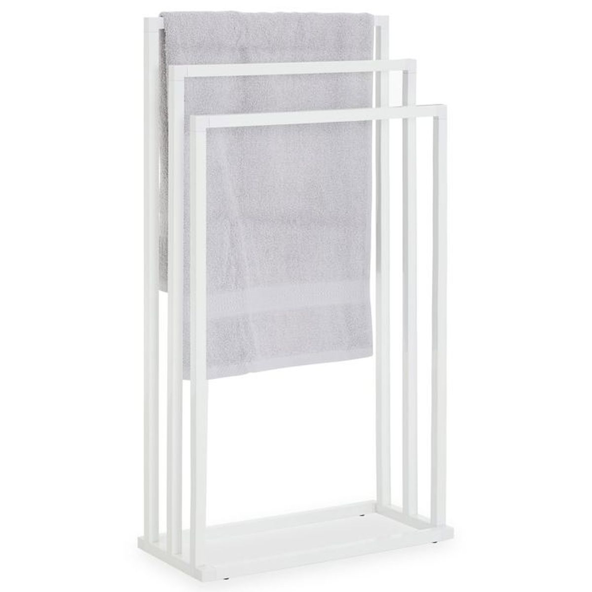 Porte Serviettes Sur Pied Kuno Portant Pour Vetements Et Linge De Salle De Bain Avec 3 Niveaux D Etendage Structure En Metal Blanc Achat Vente Porte Serviette Porte Serviettes Sur Pied K