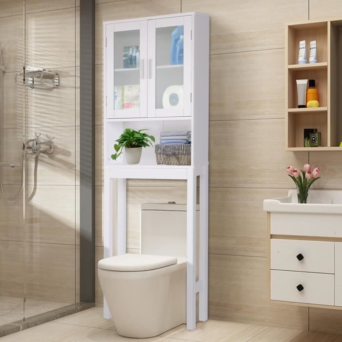 Dreamade Wc Machine A Laver En Bois Verre Avec 2 Portes Tablette Reglable Pour Salle De Bain 57 5 X 19 X 170cm Blanc Achat Vente Colonne Armoire Wc Wc Machine A Laver En