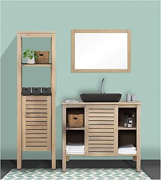 Envie D Une Deco Bleue Choisissez Des Meubles De Salle De Bain En Bois Naturel Pour Un Rendu L Meuble Salle De Bain Salle De Bain Tendance Salle De Bain Bois