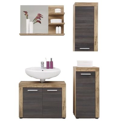 Meuble De Salle De Bain Suspendu Chene Gris Fonce Avec Miroir Et Vasque Maja Dya Shopping Fr