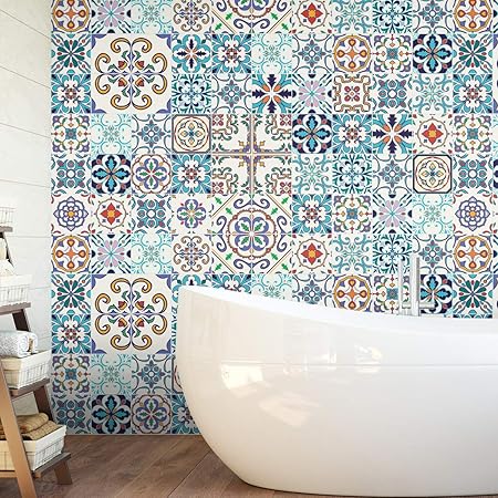 Sticker Adhesifs Carrelages Sticker Autocollant Carreaux De Ciment Autocollant Carreau Ciment Mural Salle De Bain Et Cuisine 10 X 10 Cm 30 Credence Adhesif Azulejos Amazon Fr Bricolage