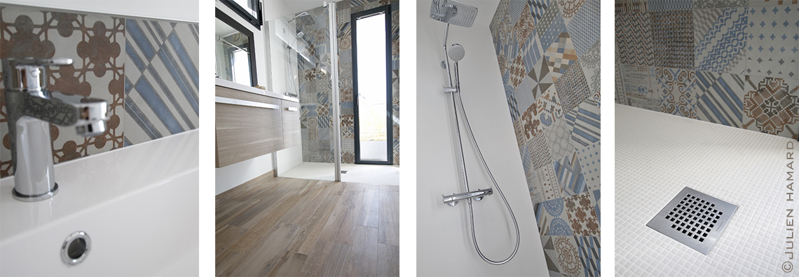 Vue Du Carrelage Parquet Et Carrelage Carreau Ciment En Detail Avec La Baignoire De La Decoration Salle De Bain Salle De Bain Carreaux De Ciment Salle De Bain