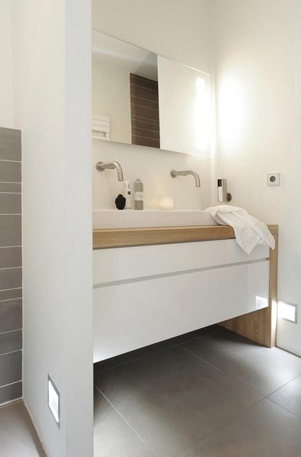 Salle De Bain Gris Et Bois Une Salle De Bains En Blanc Et Bois Dream Home Idees Conception Jardin