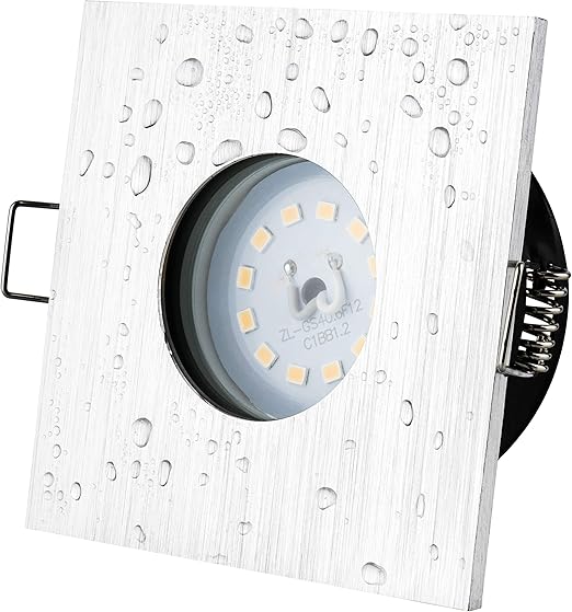 Spot Encastrable De Salle De Bain Ip65 Carre Ideal Pour Ampoule Led Et Halogene 49 Eacu Couleur Aluminium Brosse 12 V Mr16 230 V Culot Gu10 Inclus Sans Ampoule 51 Mm