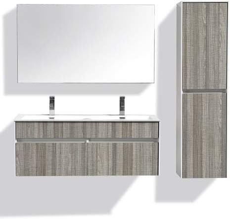 Ensemble De Salle De Bain Double Vasque Trevise Gris Taupe Meuble De Salle De Bain Deux Vasques Avec Colonne Et Armoire