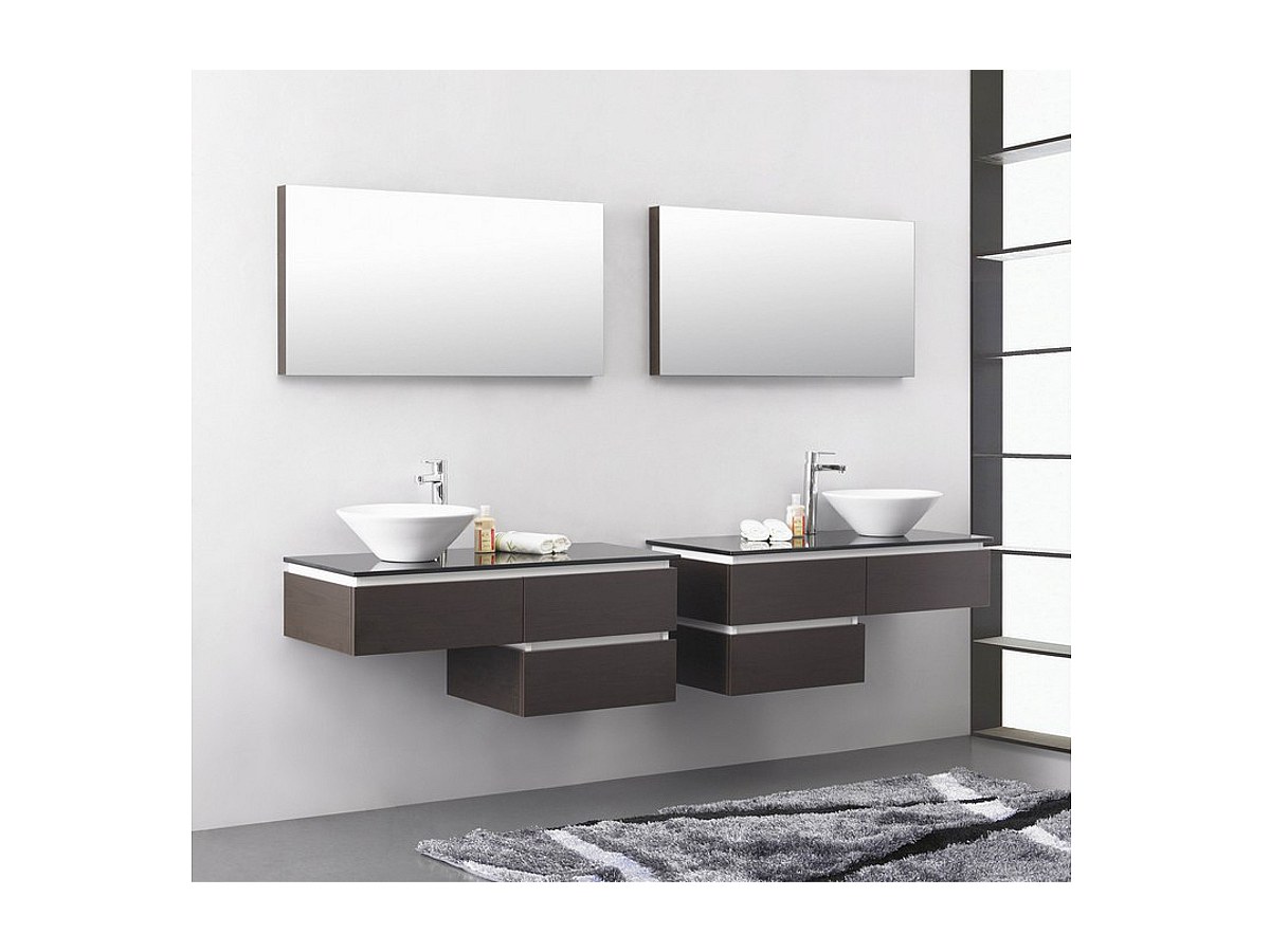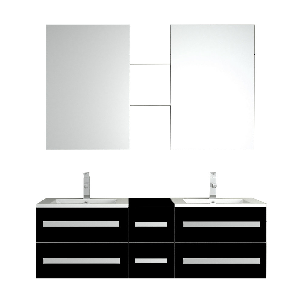 Ensemble Salle De Bain Suspendu Double Vasque 152cm 6 Tiroirs Design Moderne 2 Miroirs Noir A Seulement 249 00 Sur Interouge Com