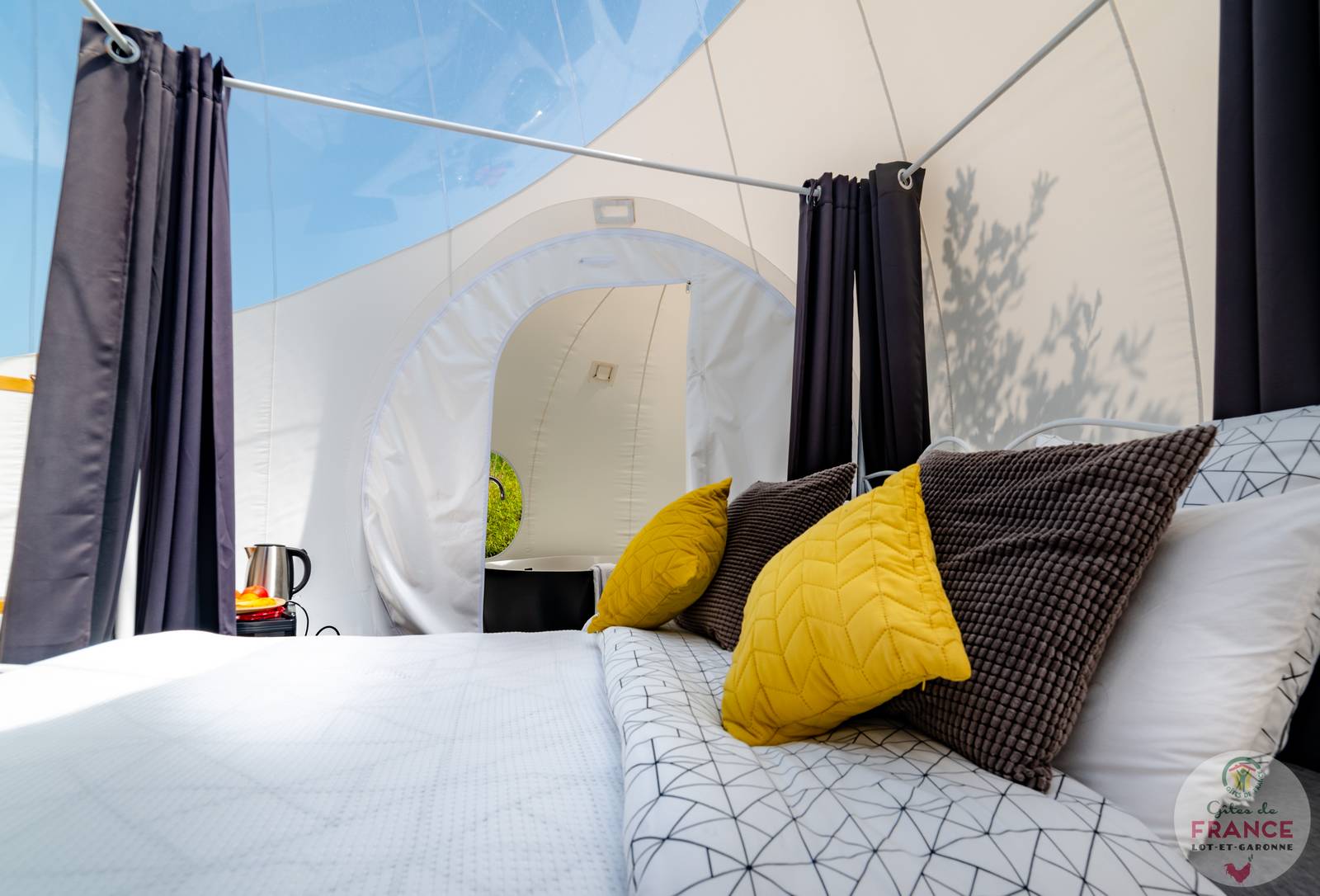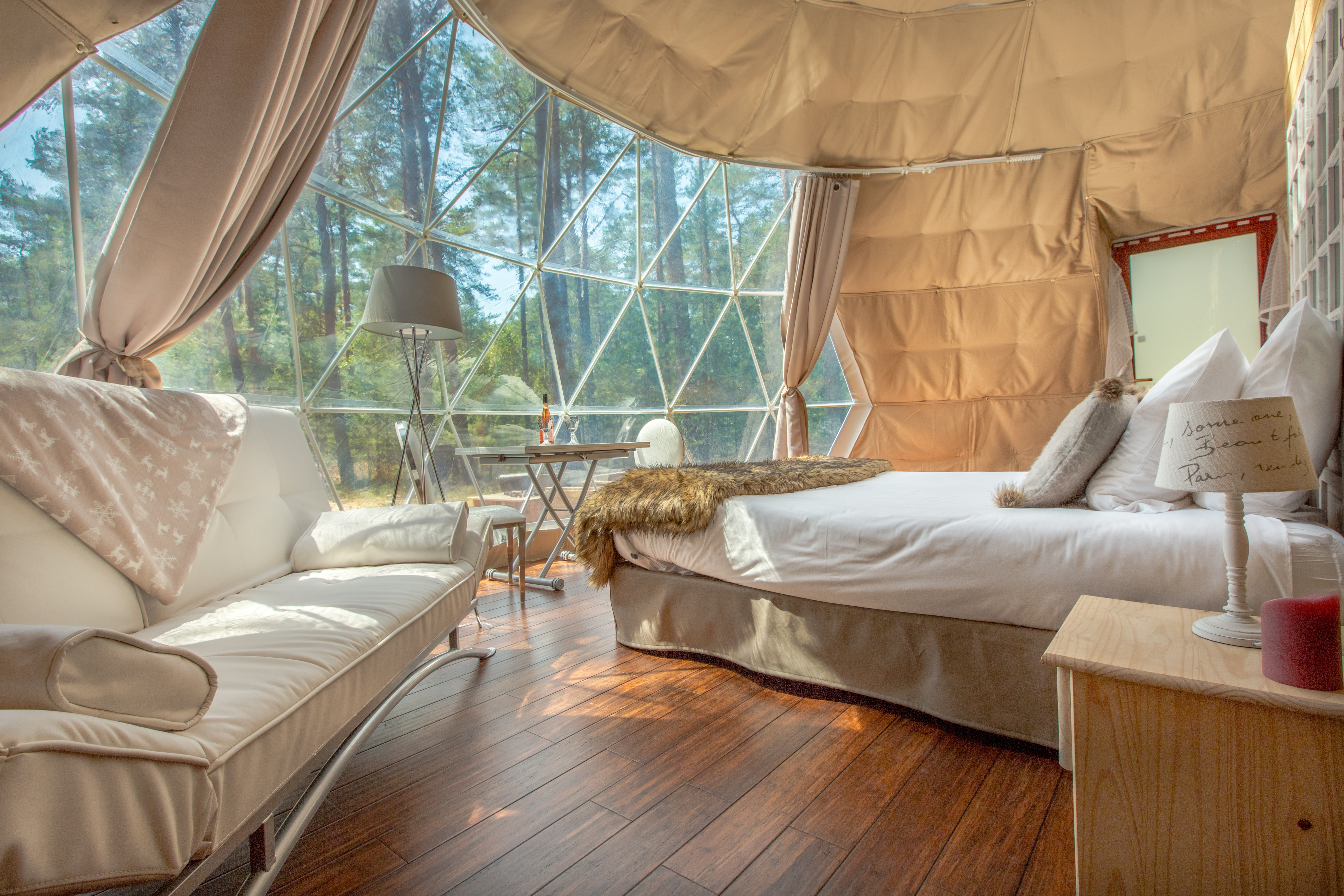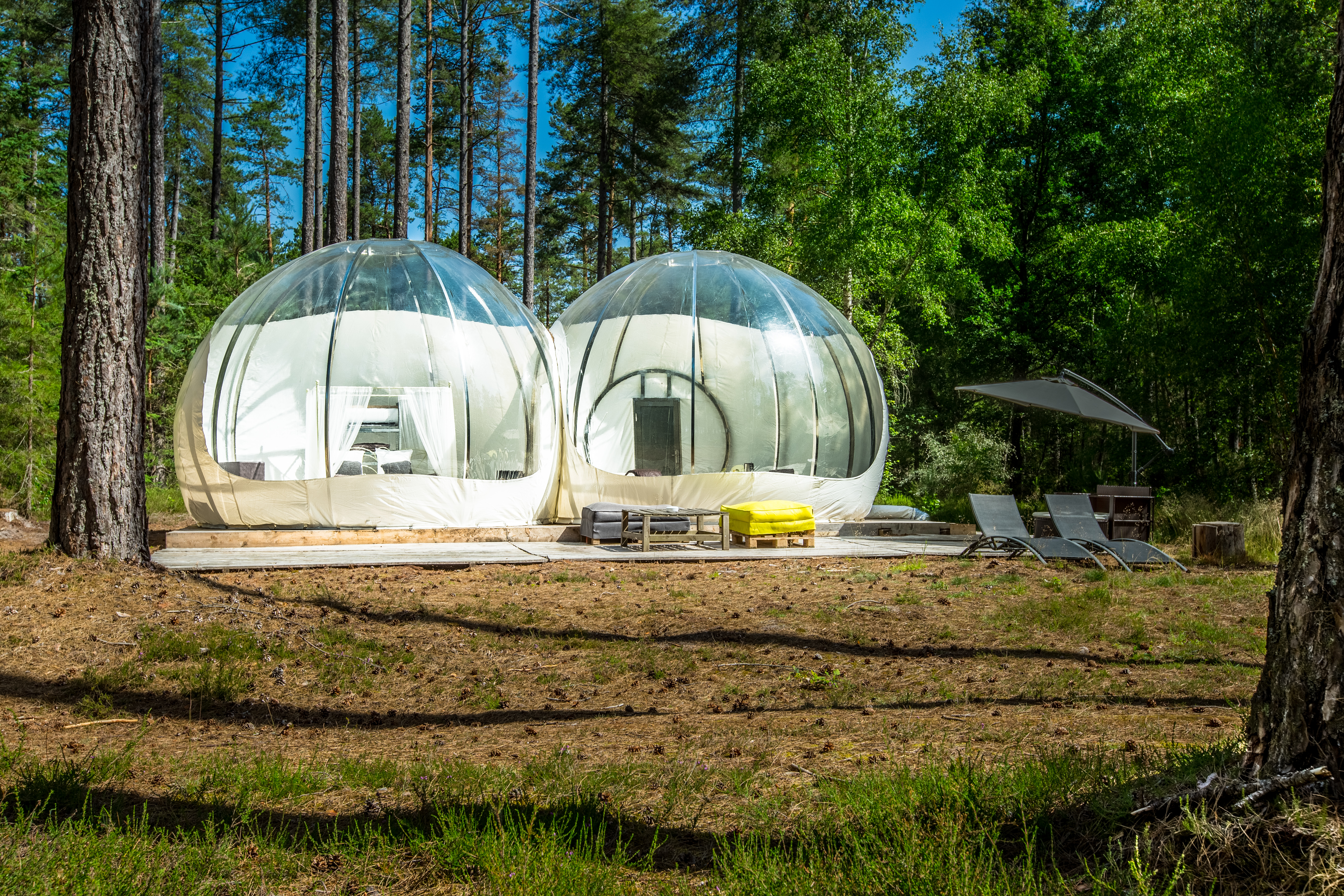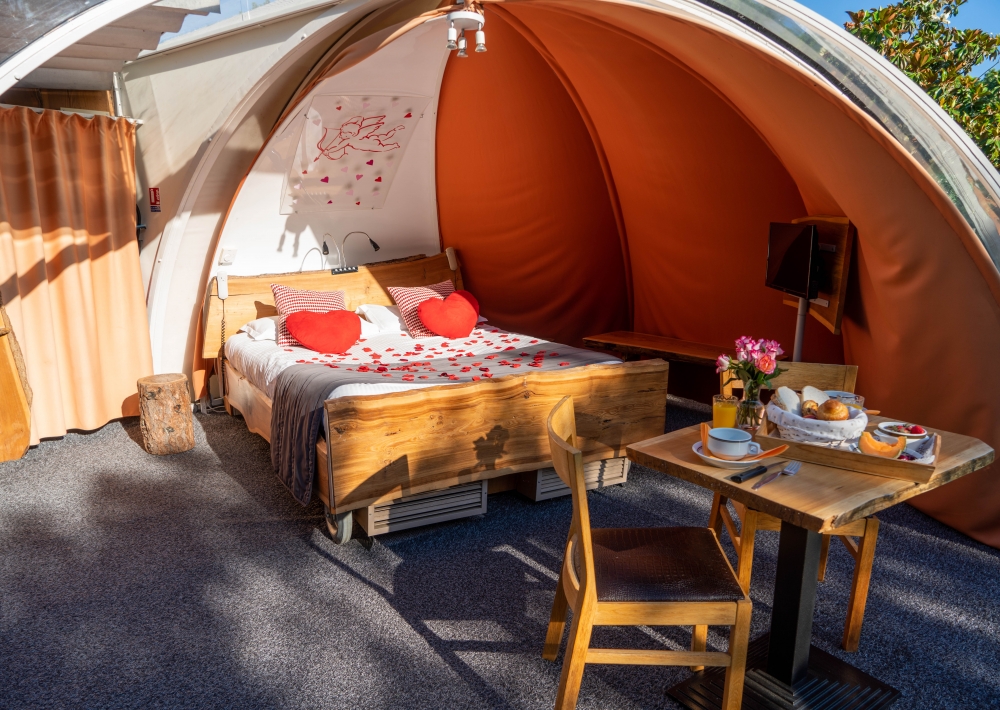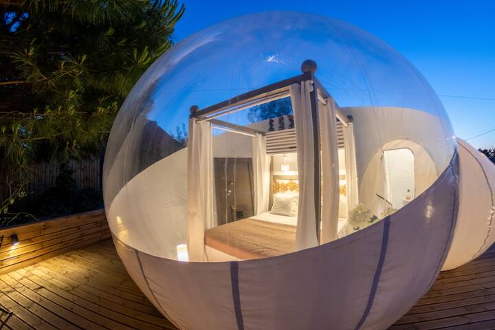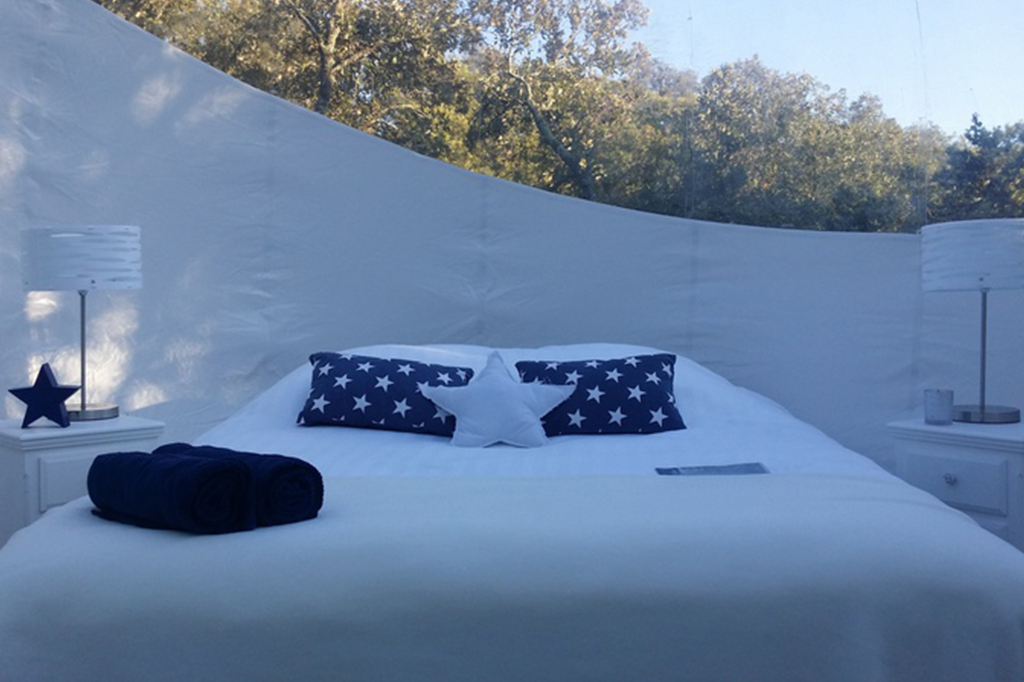 Lit queen size la bulle transparente dispose dun lit de 160 x 200 cm pour un maximum de confort. Nous fabriquons louons et vendons nos spheres. Nos petits dejeuner repas et autre options vous sont servis directement au sein de votre bulle.
