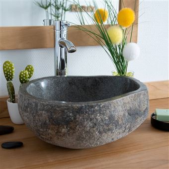 Wanda Collection Grande Vasque En Pierre Naturelle Galet De Riviere 50 Amazon Fr Cuisine Maison
