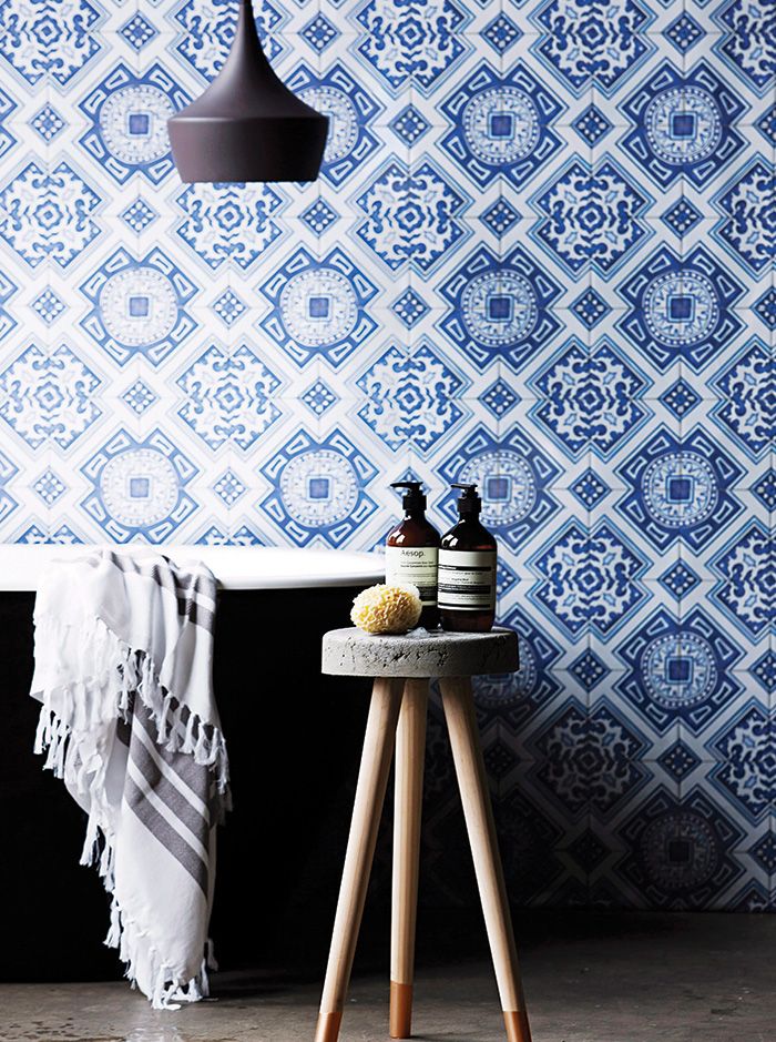 Vintage Salle De Bain Carreau De Ciment Et Bois